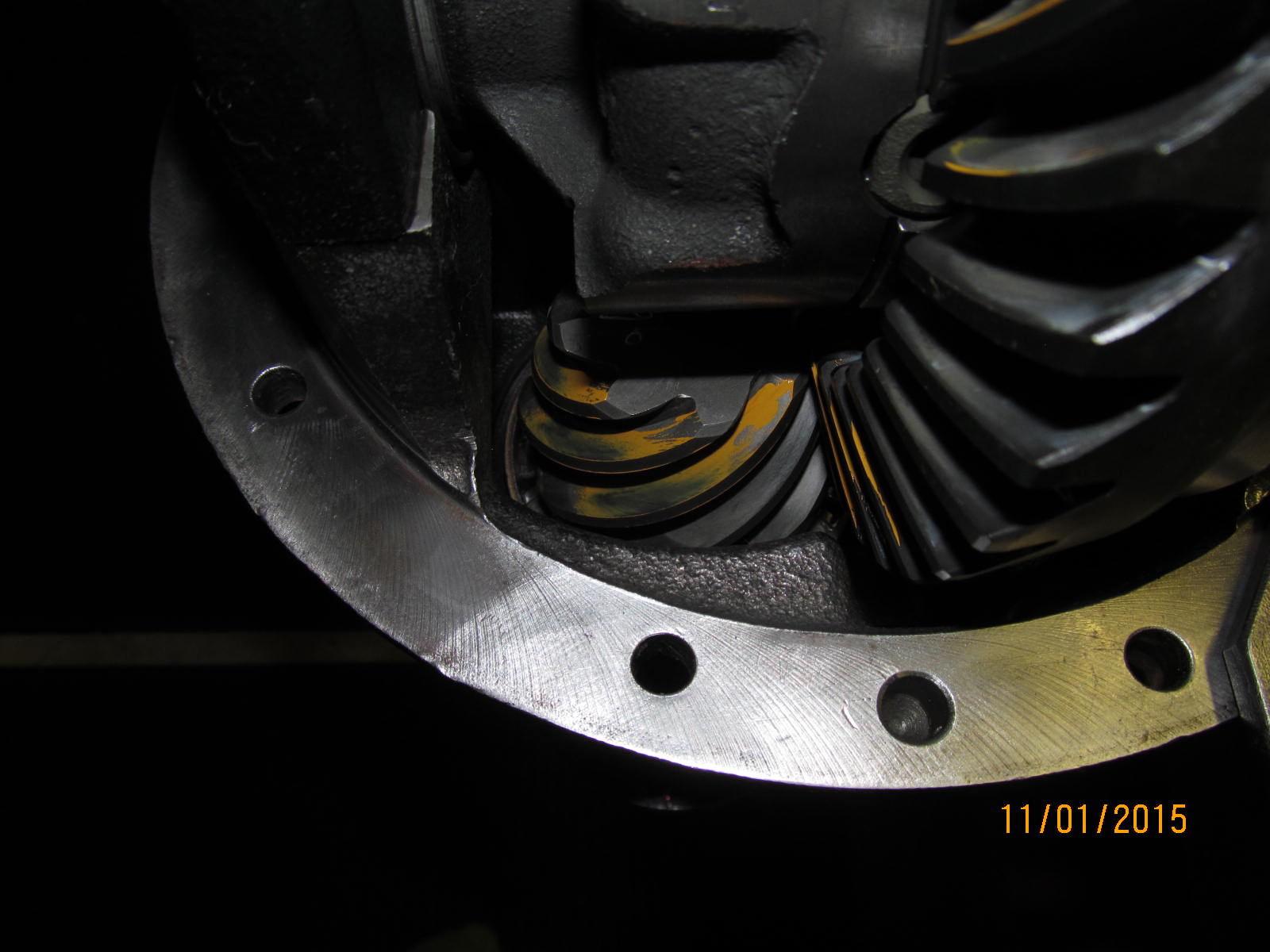 Drive side---It's a keeper. It favors the outside(heel) but that is not "adjustable" at this point because the face to flank says that the depth is "slight deep" and the .006" backlash that I have is the smallest BL that I can have. |