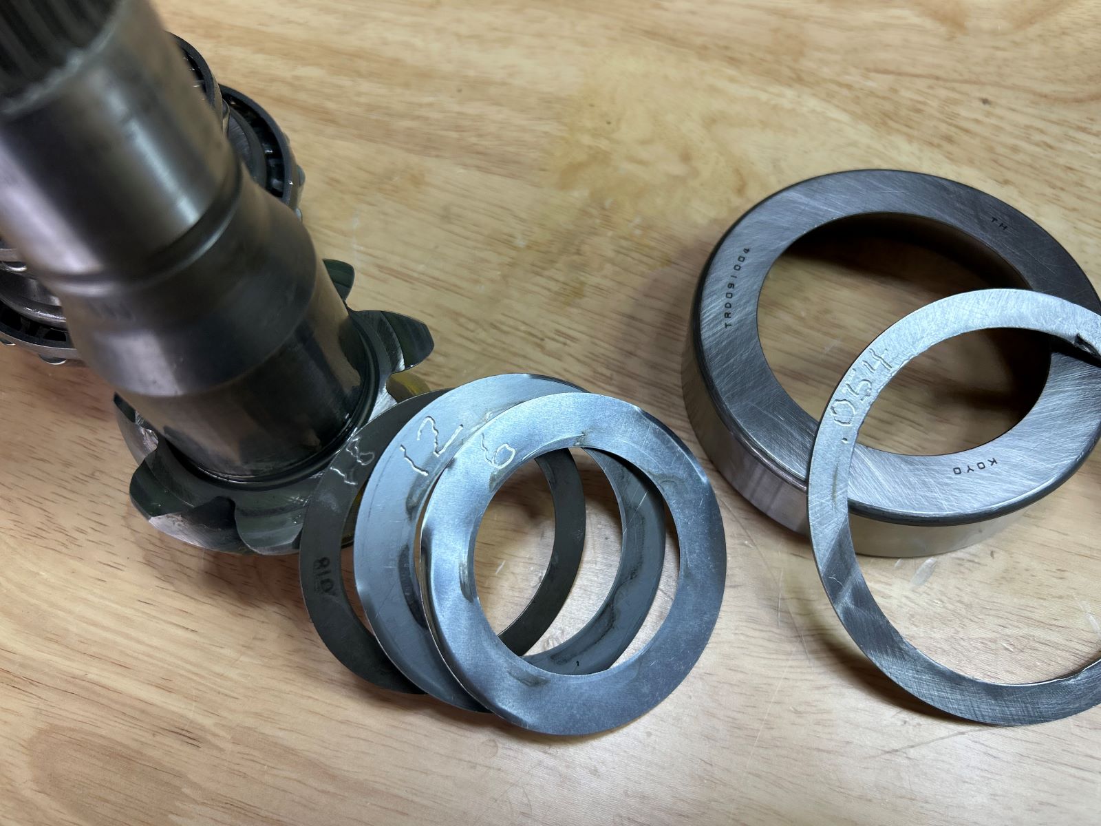 Those 3 shims add up to 036....there was also a 054 washer plate behind the large inner pinion race. That adds up to a very large .090" which is way more than the typical final pinion shim. |