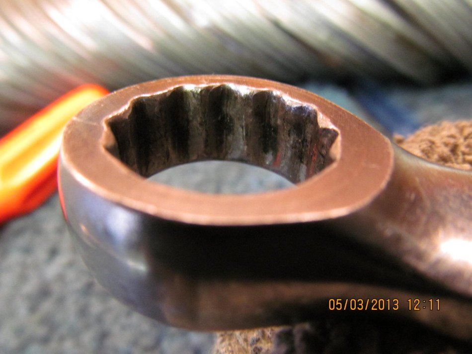 This 17mm wrench has the edges ground off to increase the contact surface with the low profile boltheads. |