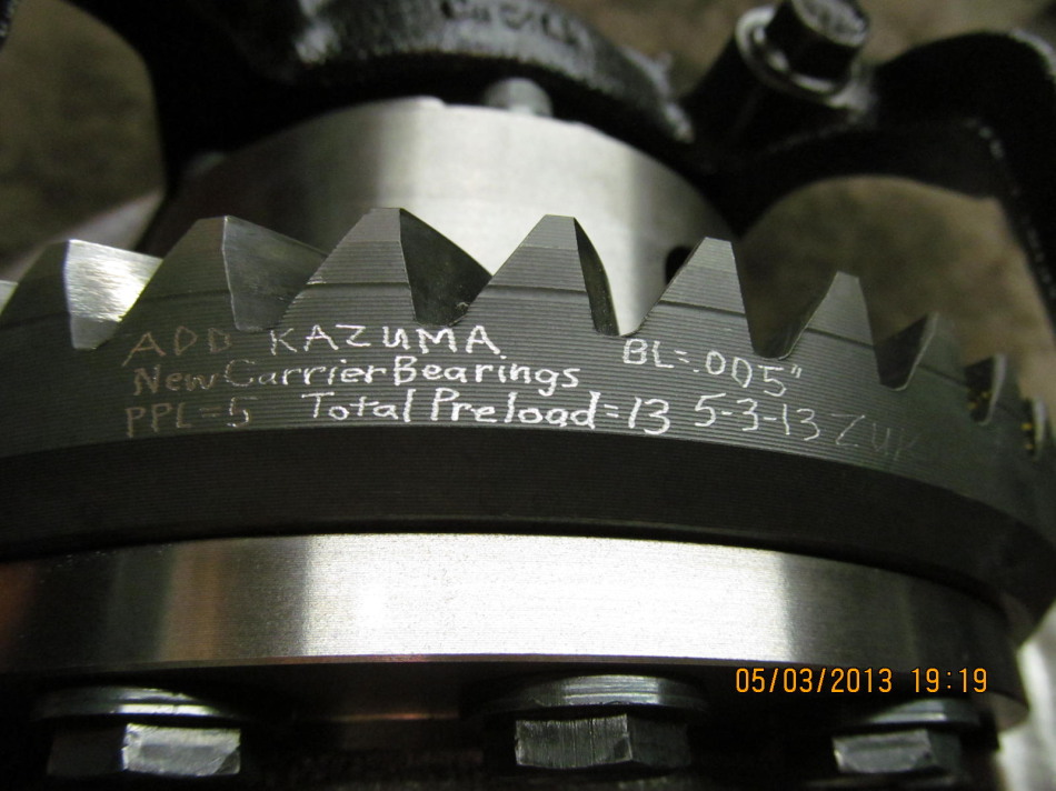 Notes taken of Eric's Kazuma install with new carrier bearings. The pinion end was not disturbed. There was nothing wrong with it. Eric did the right thing and supplied me with new, fresh carrier bearings with the Kazuma. This should give a very long life....and good all-around strength as the bearings are tight and the ring gear will resist deflection. |
