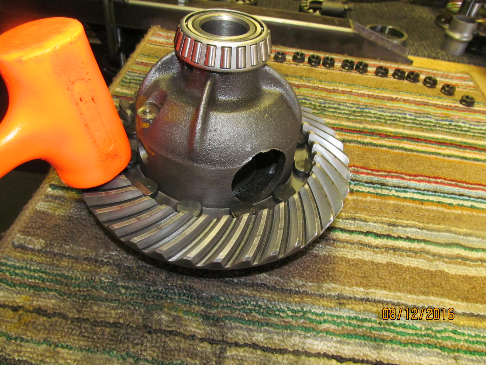 | Ring gear assembly is mounted in place and the bearing caps are set to 70 ft/lb |