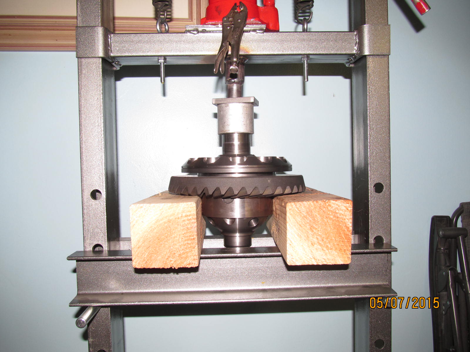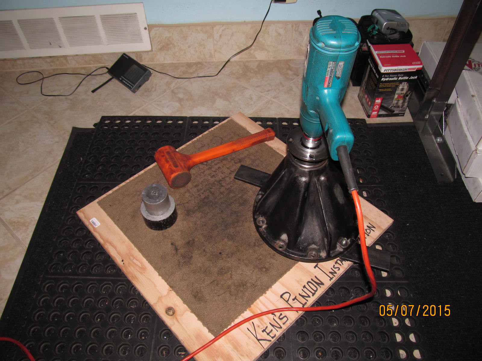The lead filled plastic hammer would not work to get the ring gear to seat down so the 12T press and a couple pieces of wood did the trick. |