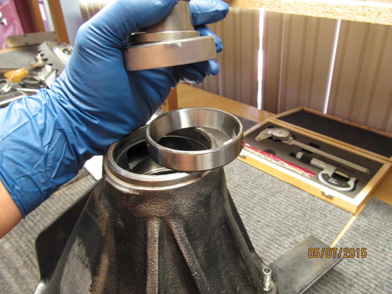 The larger inner race is a little "trickier" to get started but once it gets tapped down straight for a short distance then it will drive home all the way with no binding up. With both races in now we can move on to the pinion... |