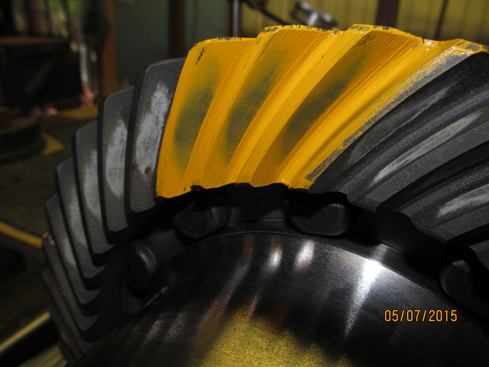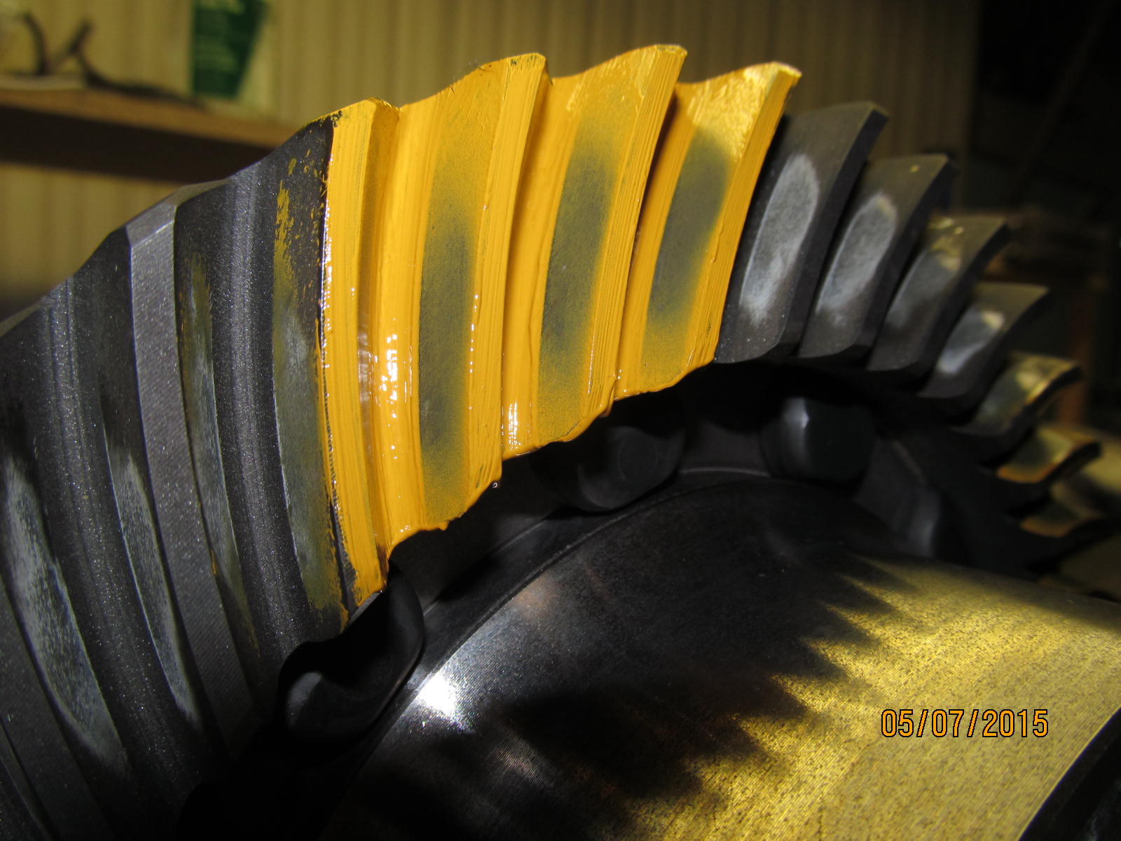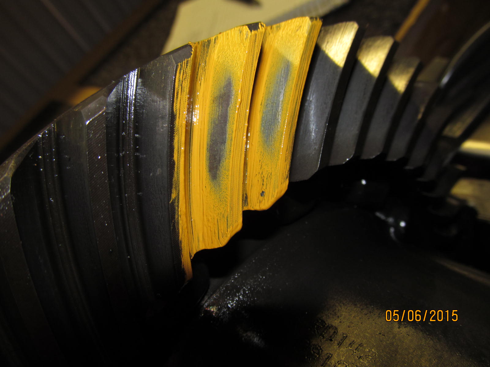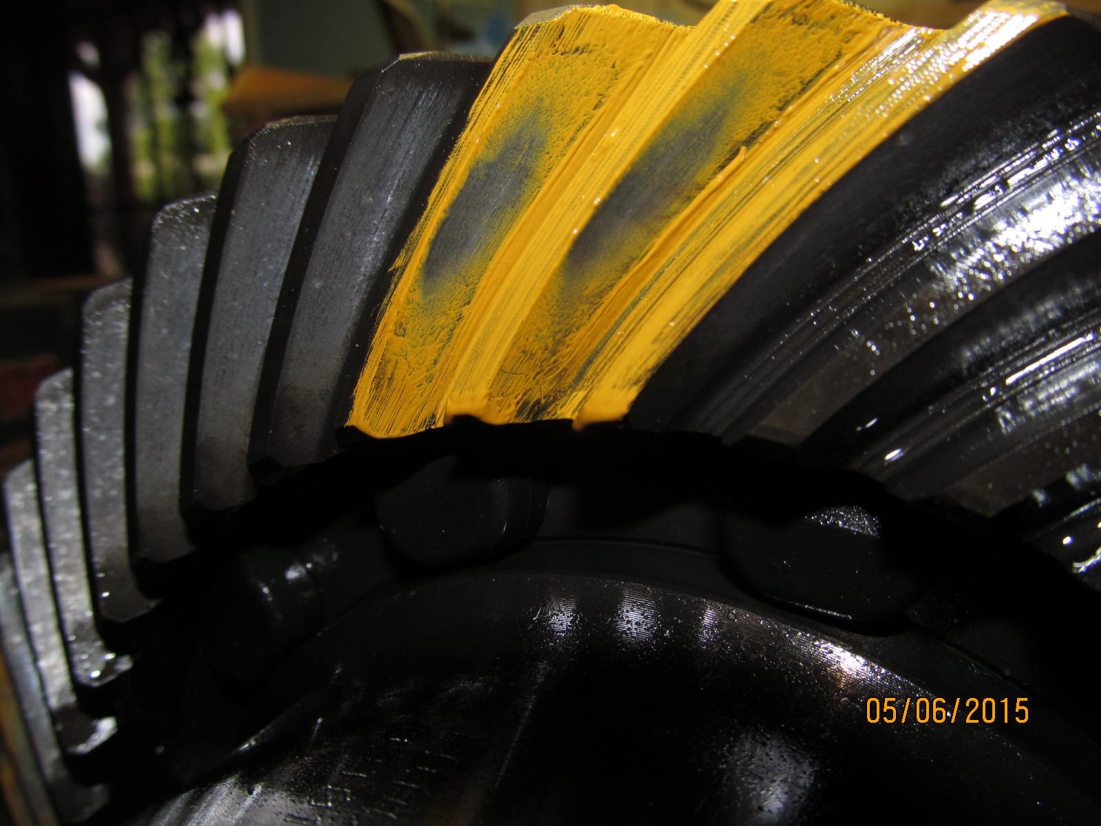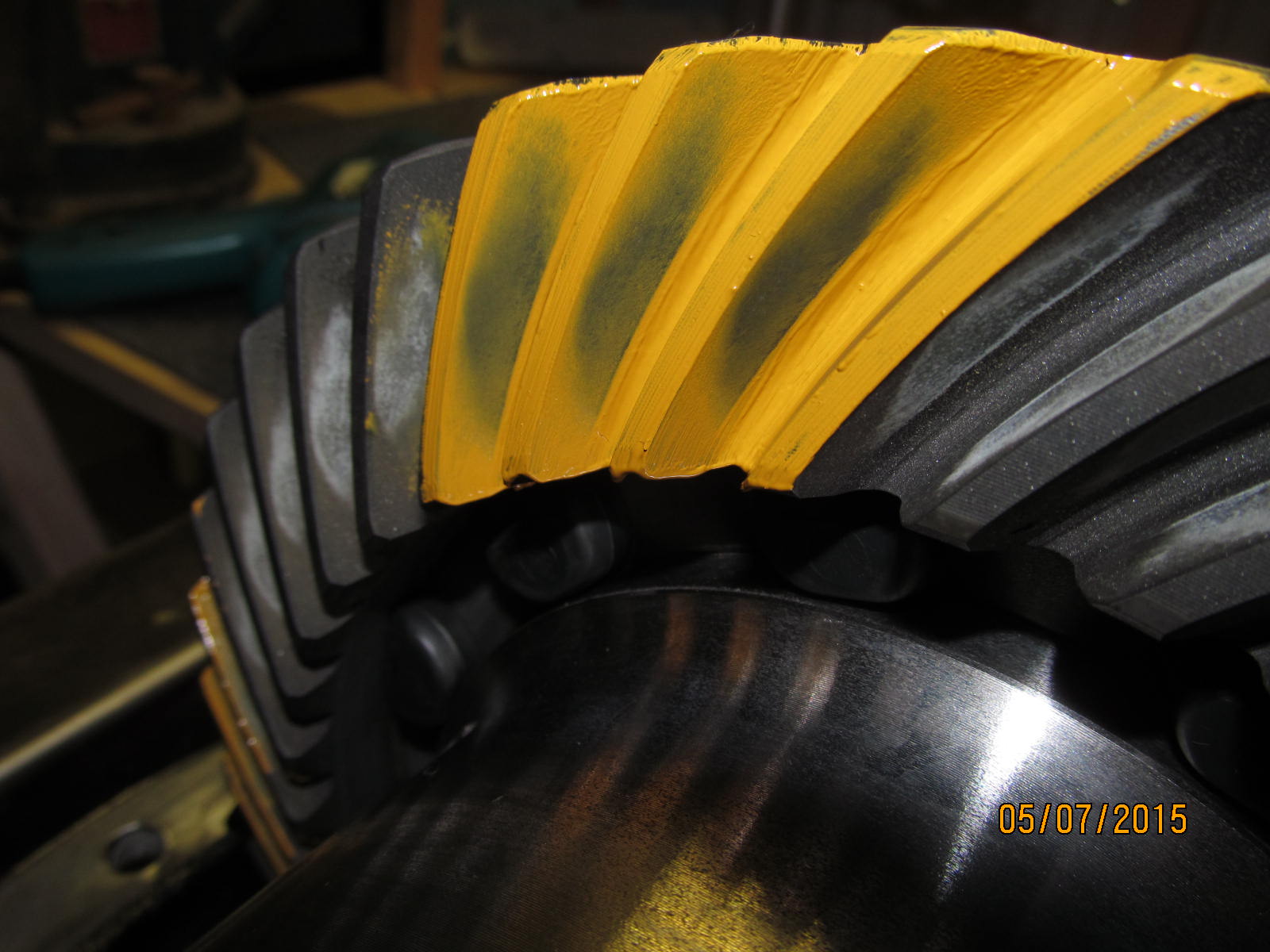 A quick check of the pattern on the 456 gears shows the drive pattern is fairly centered and ok. |