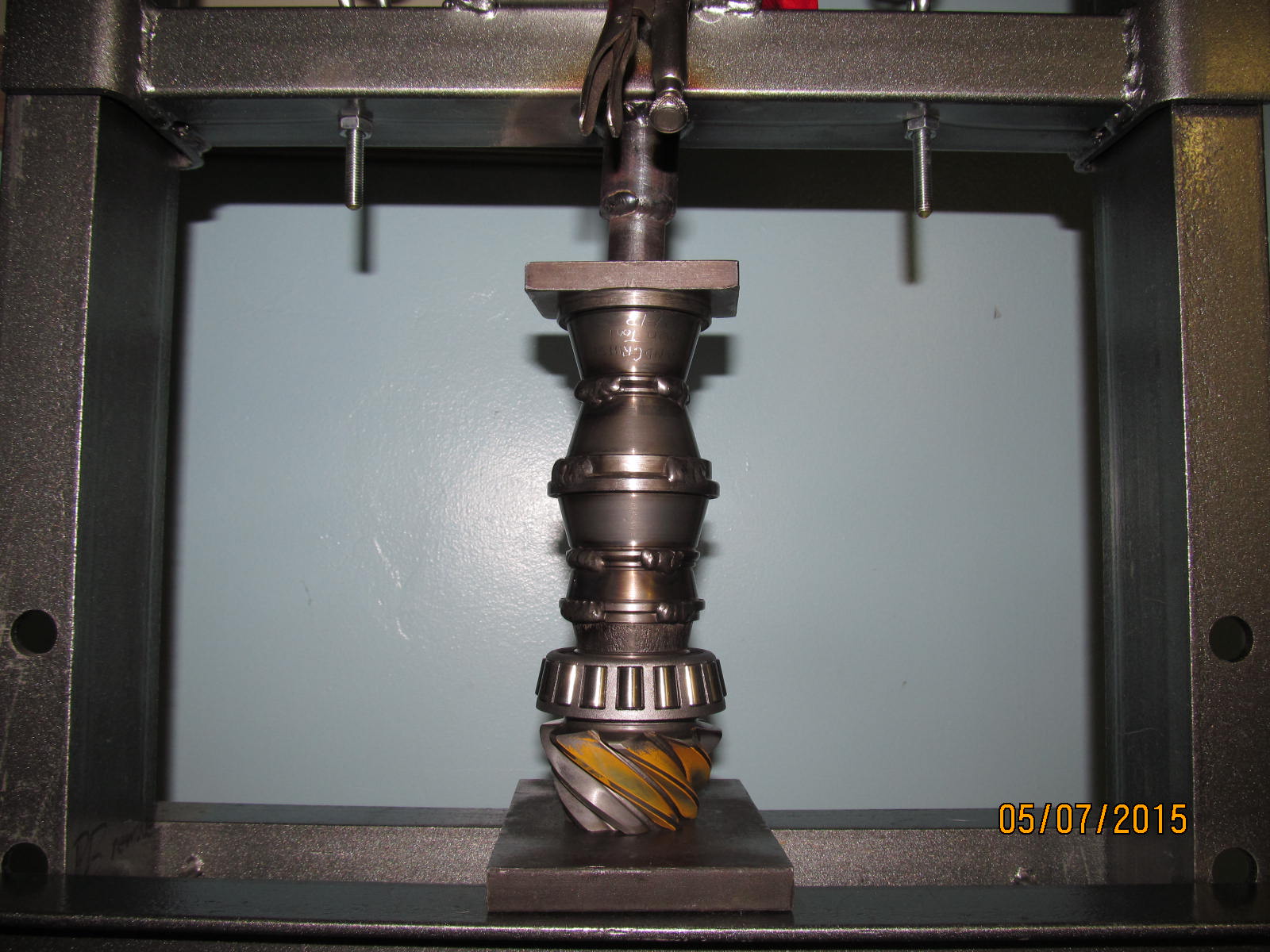 The pinion end is temporarily assembled with NO crush sleeve or solid collar. Oiling the bearings for this upcoming depth check is also not required. But, what is required, is to impact it just enough to yield 10~20 in/lb of pinion preload. |