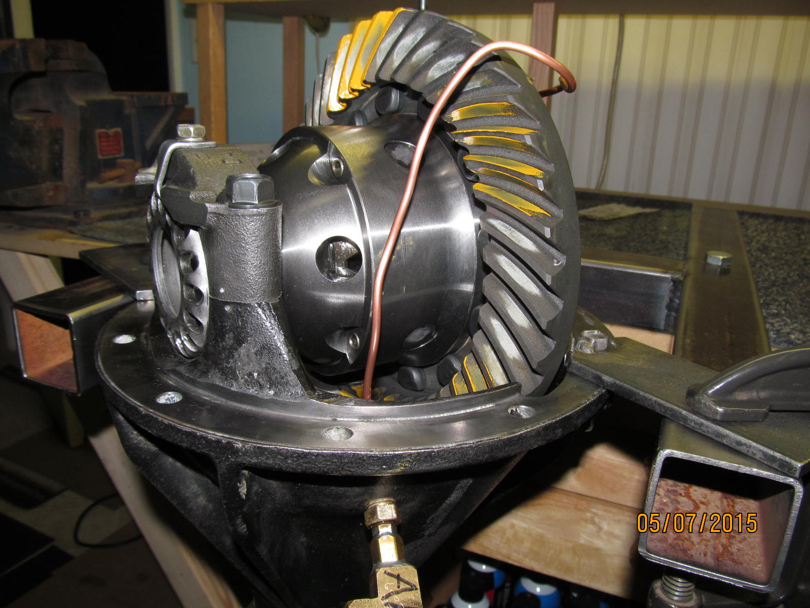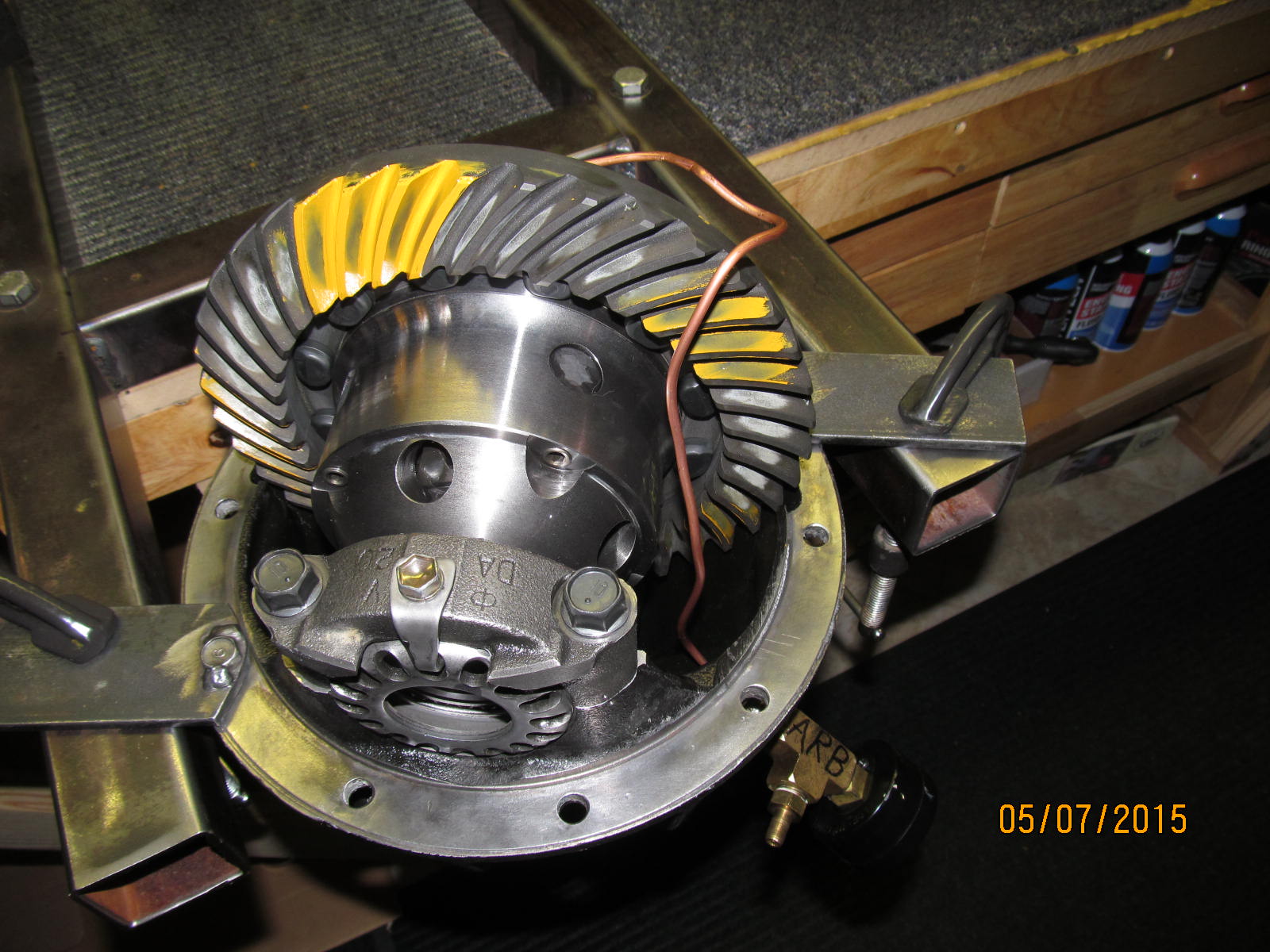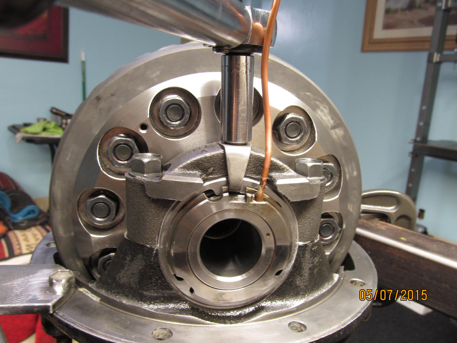 The ARB case is now installed. Wheel adjusters and bearing caps are mounted up...65 ft/lb on the 4 bearing cap bolts. |