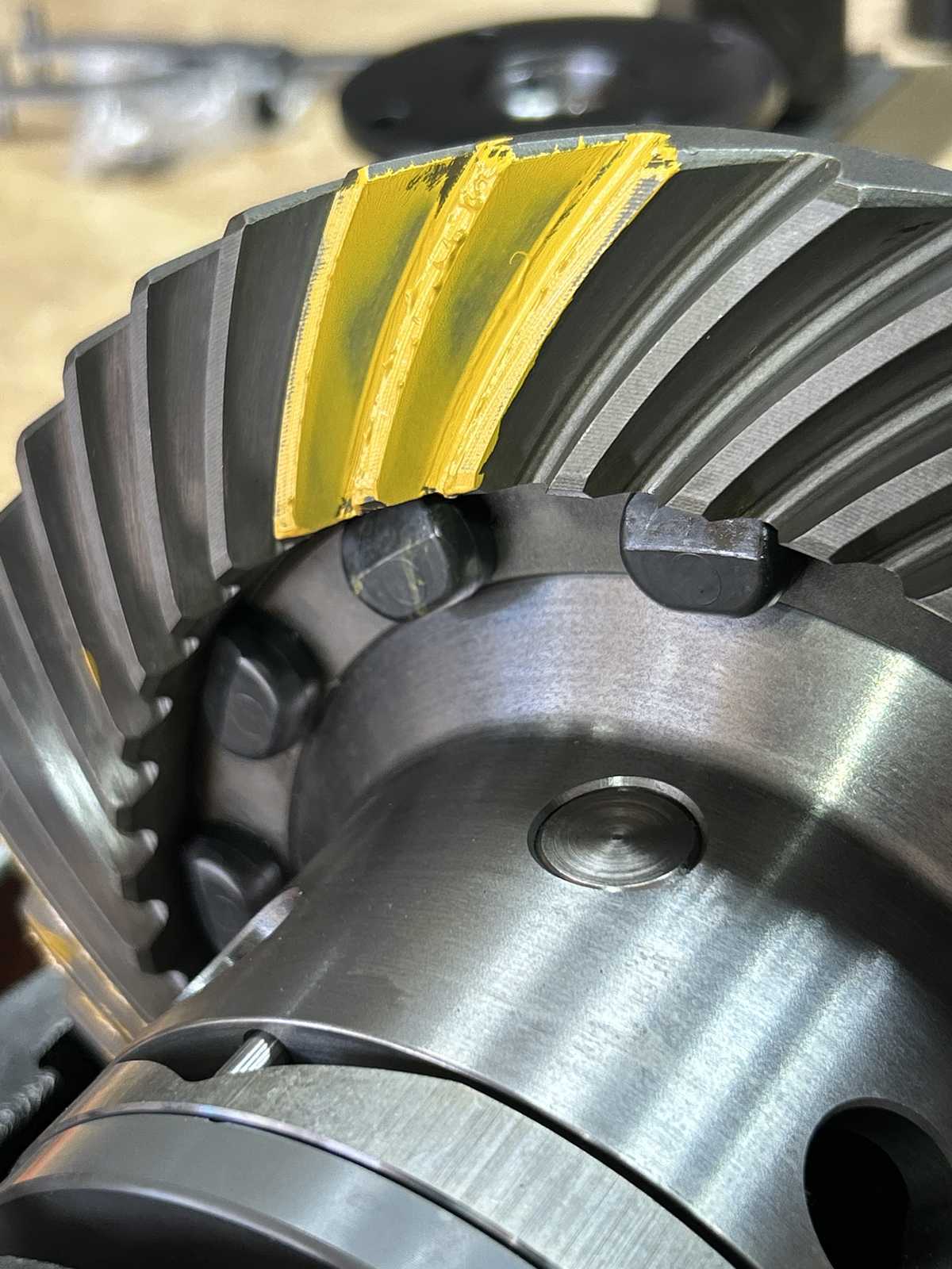 And then put it all back together and repaint... The drive side has a very nice spread evenly on the tooth. Much better. |