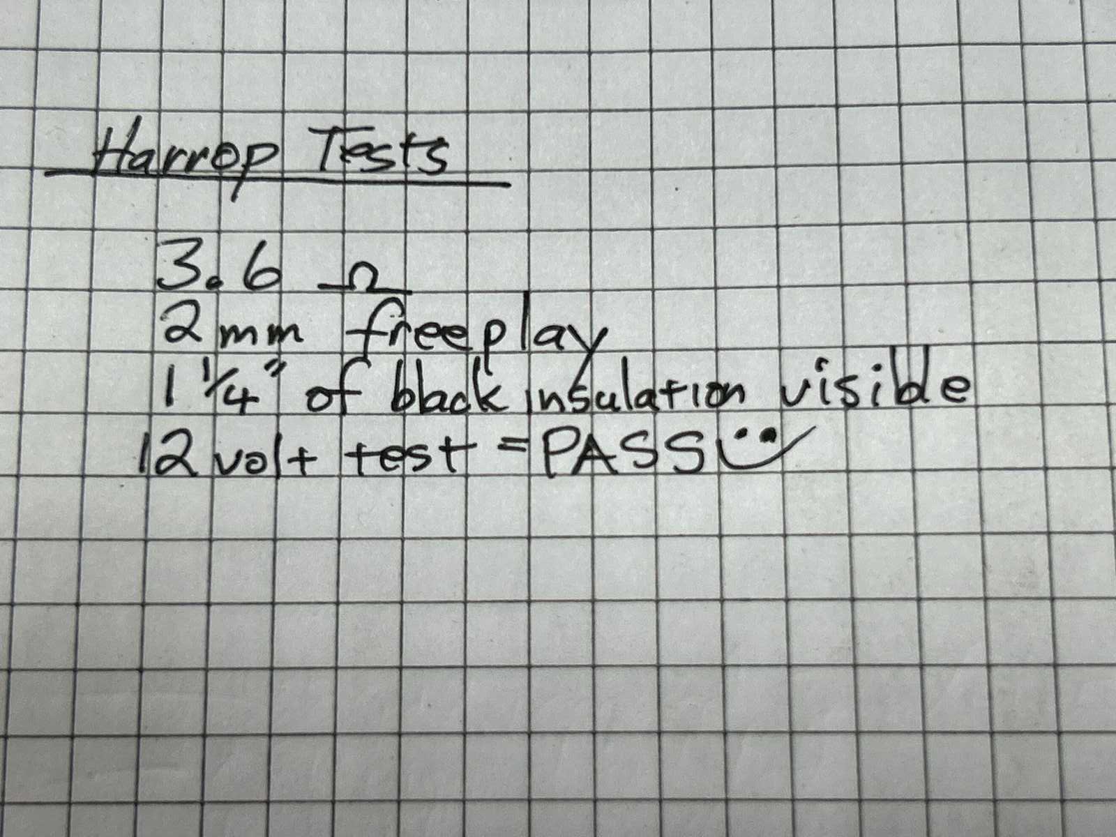 | 12 volts applied to the Harrop and passed the engagement test. |