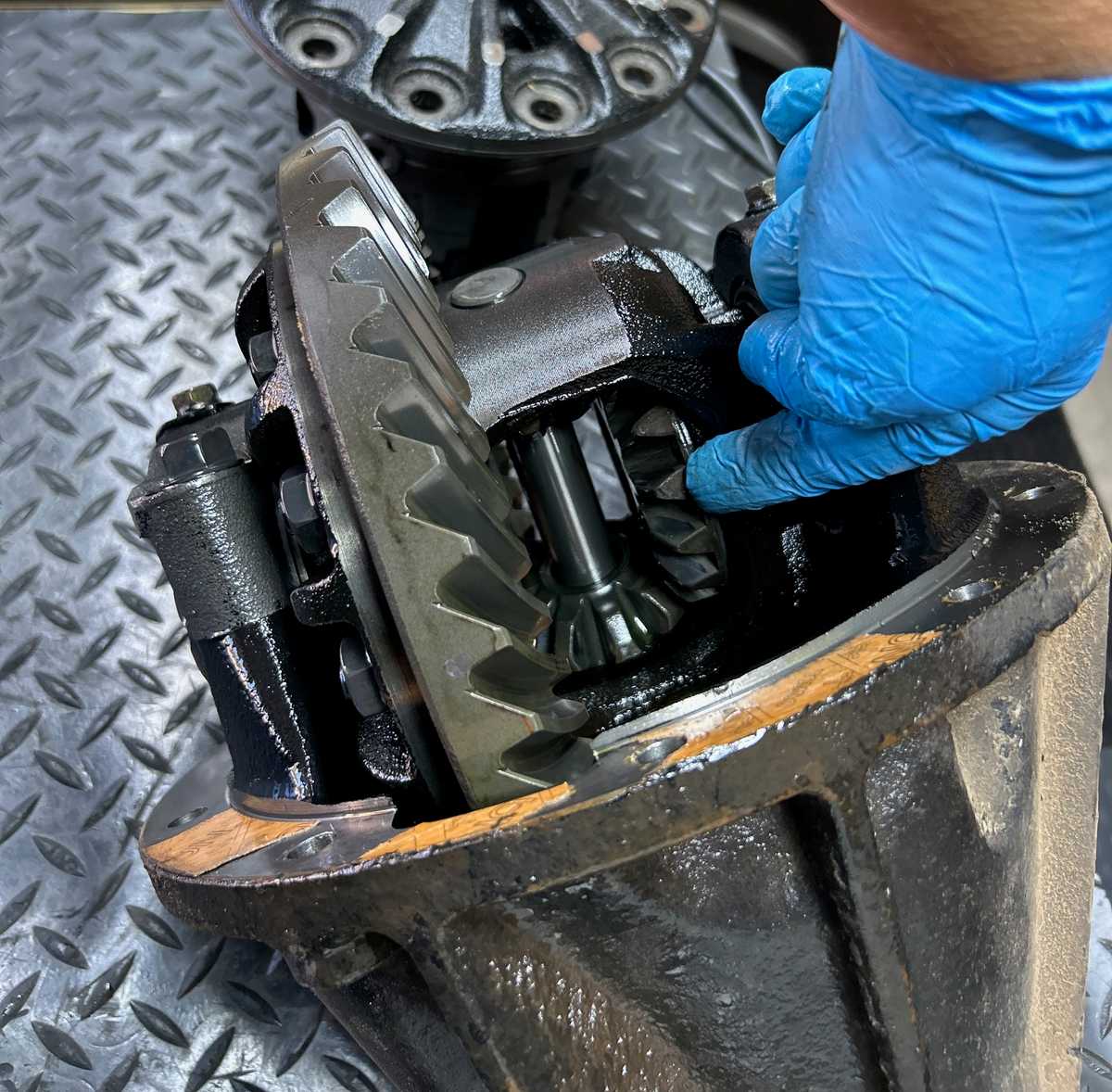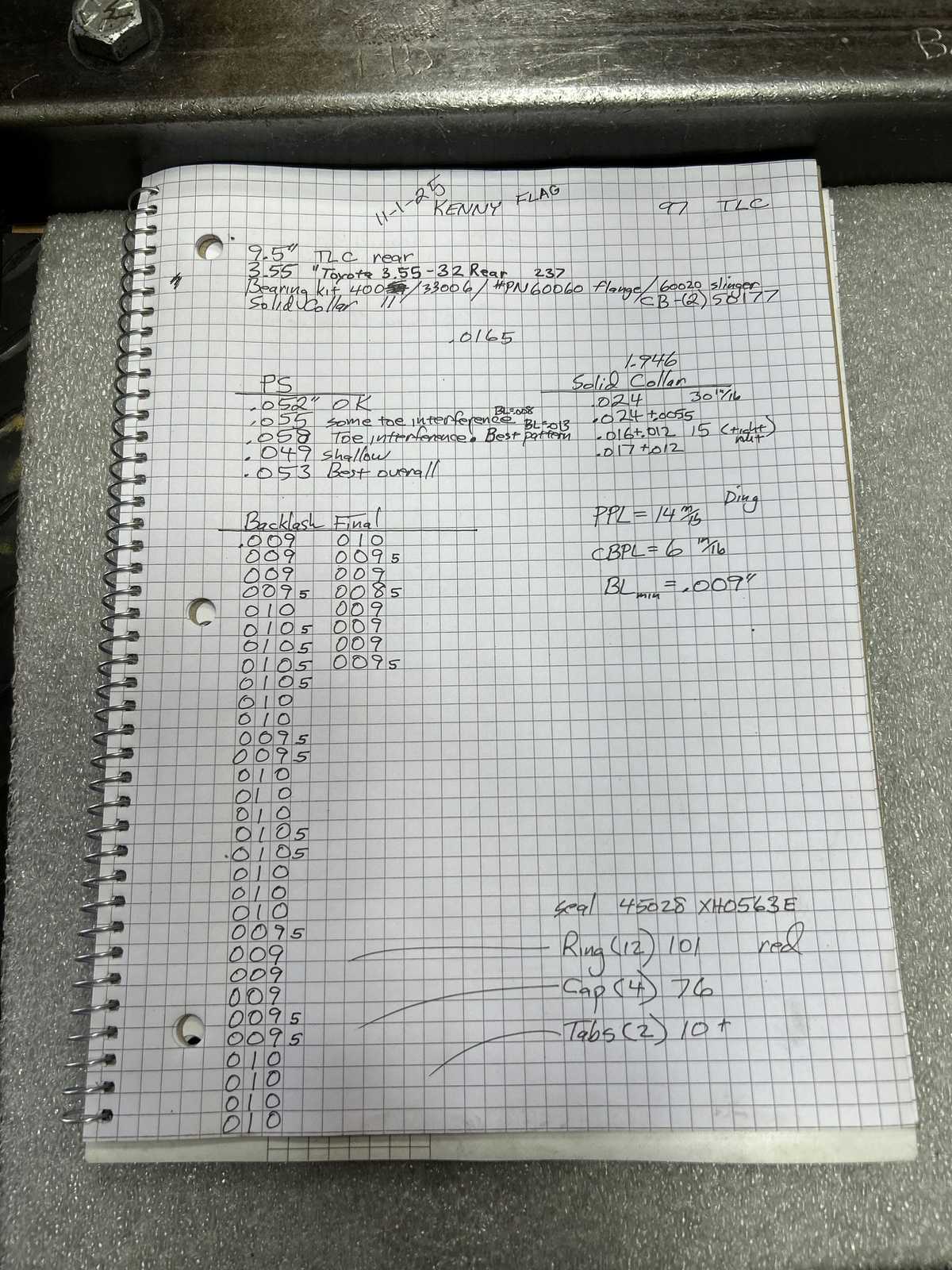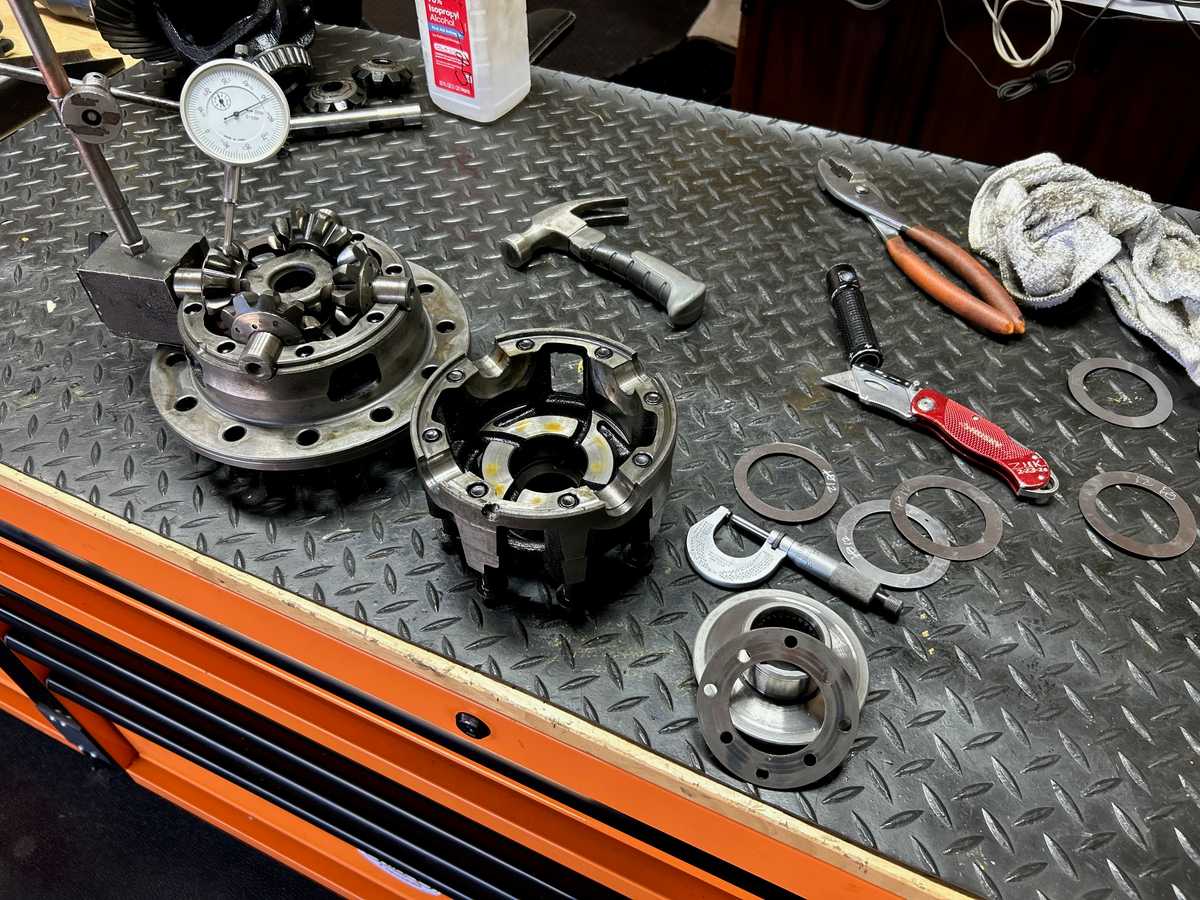 Backlash is measured between sidegear and the spiders. I noted about .060" and that needs to be closer to .002~.008" per factory specs. Adding a .040" shim to each sidegear solved that issue. |