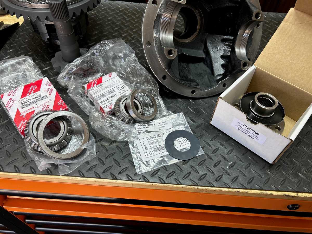 Genuine pinion bearings will go in. A new 32 spline flange was required because the pinion splines were the massive 32 splines. This 32 spline flange can be had at Cruiser Outfitters. |