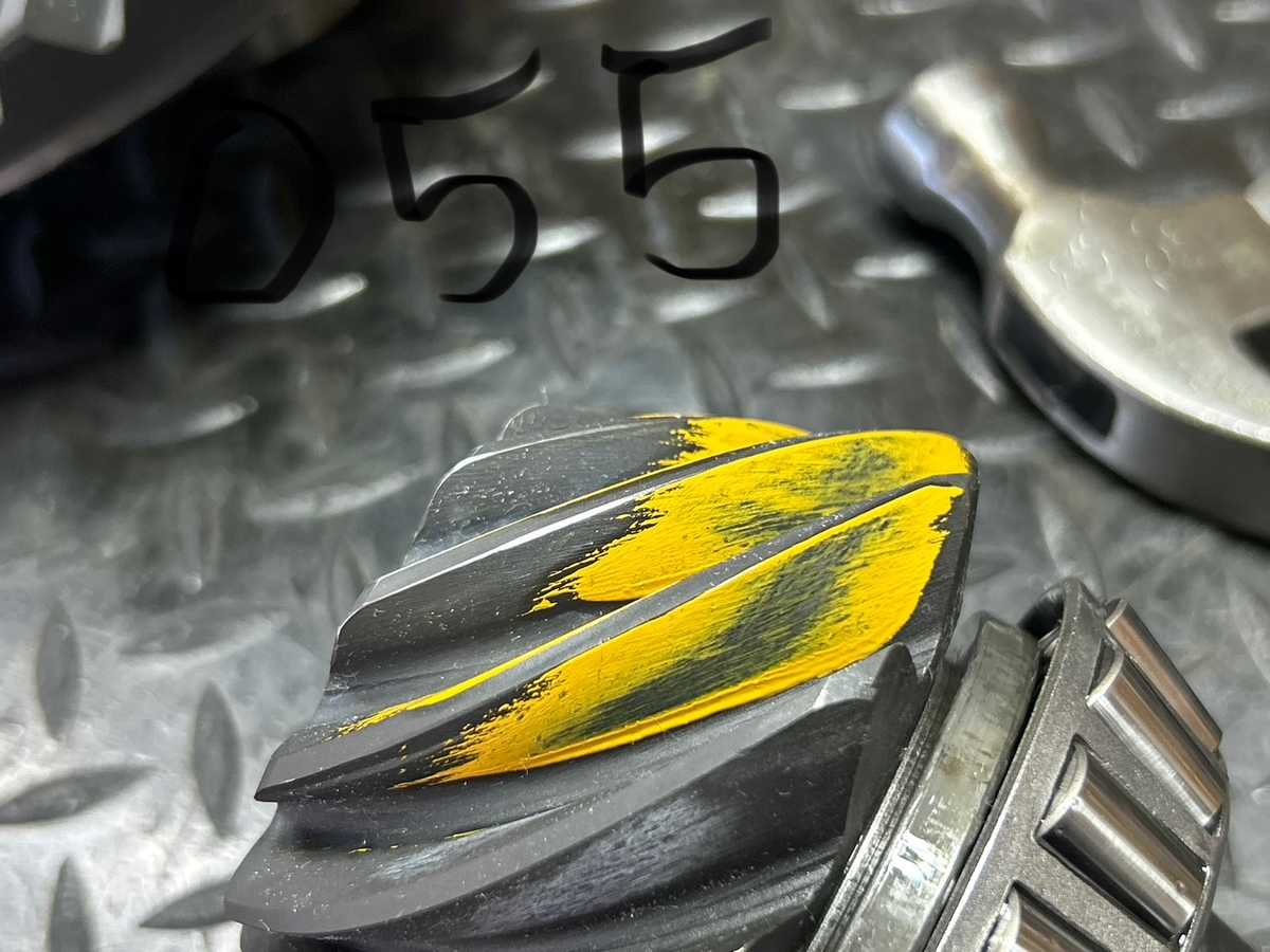 Now trying a thicker shim 058" drive...good looking but the backlash had to be .013" to prevent the pinion teeth from contacting the root of the ring gear and locking up the rotation. |