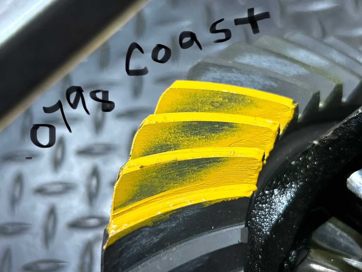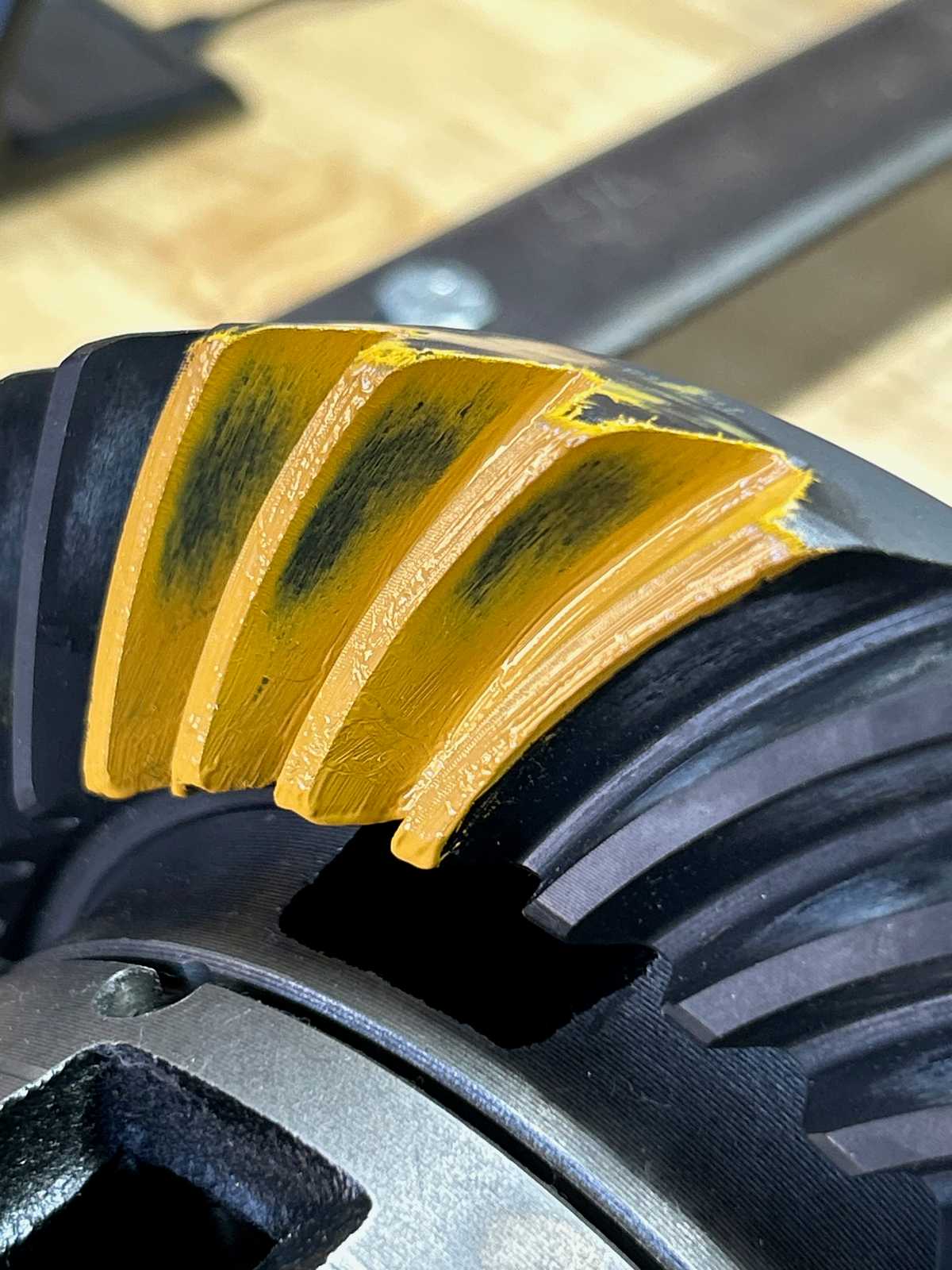 For this install, the backlash was recorded from every tooth...a total of 39 measurements. The residual pattern shown in the above pic is with .049" (too thin). |