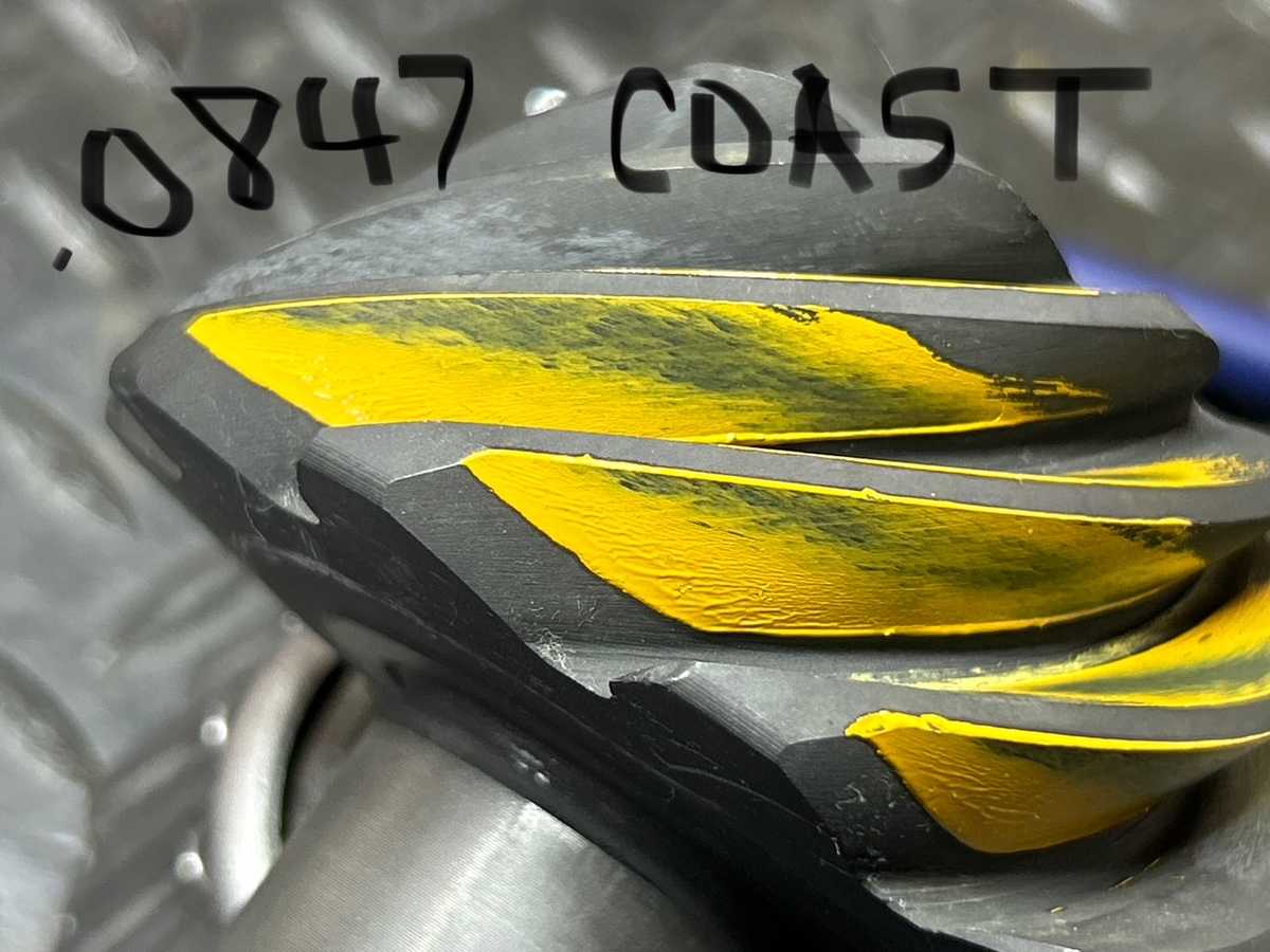 052 drive reverse painted. These gears are "blackish"...they appear to have a black oxide coating. Some say that the black ozide helps during the 500 mile break-in procedure. These are still rough gears....90% done. |