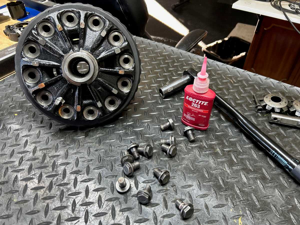 | 101 ft/lb and red loctite on all 12 ring gear bolts. |