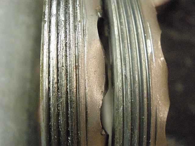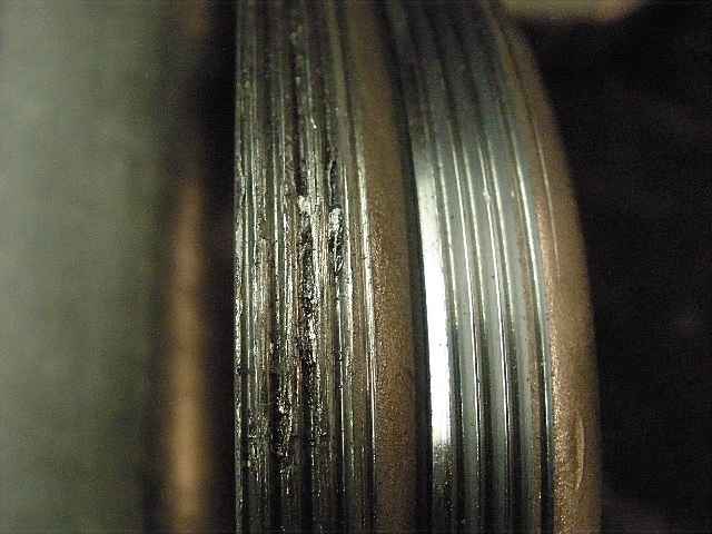 Even with all the cross-thread damage to the adjuster wheels, the actual carrier threads are not nearly as bad. |
