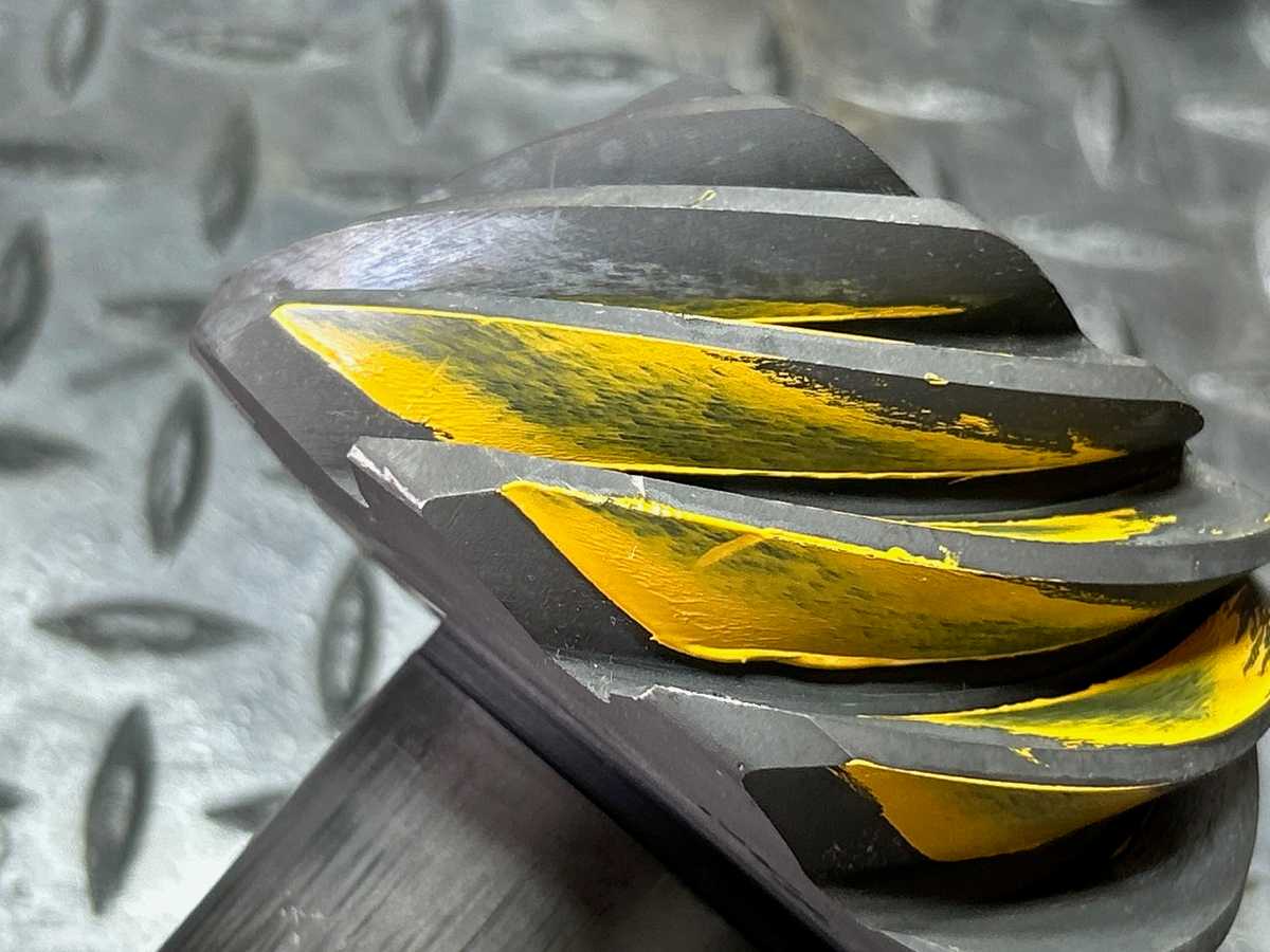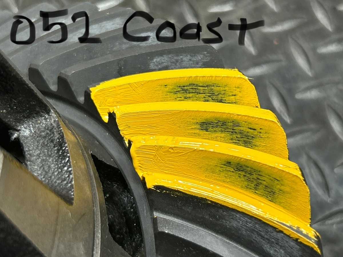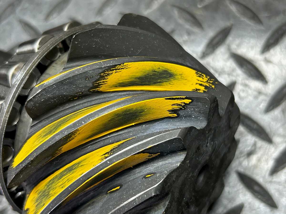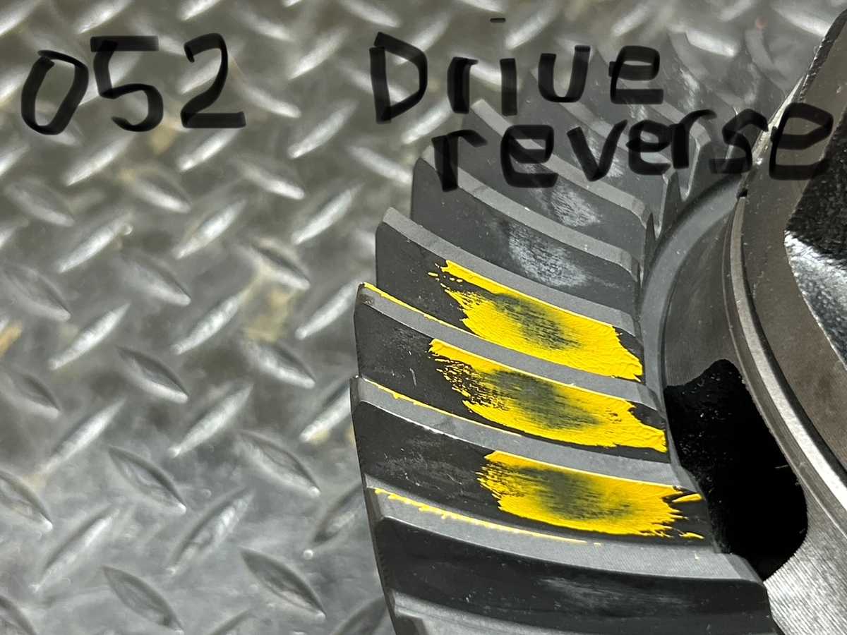 052 drive reverse painted. These gears are "blackish"...they appear to have a black oxide coating. Some say that the black ozide helps during the 500 mile break-in procedure. These are still rough gears....90% done. |