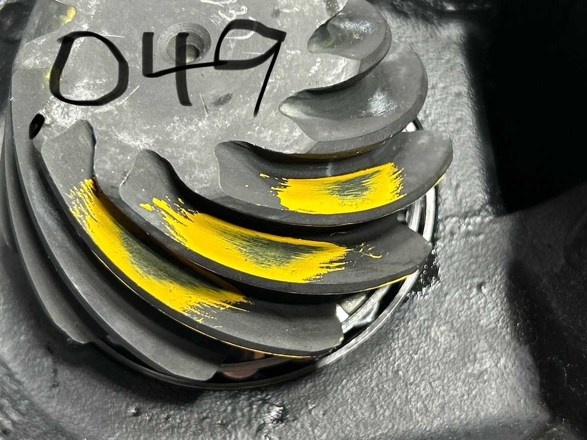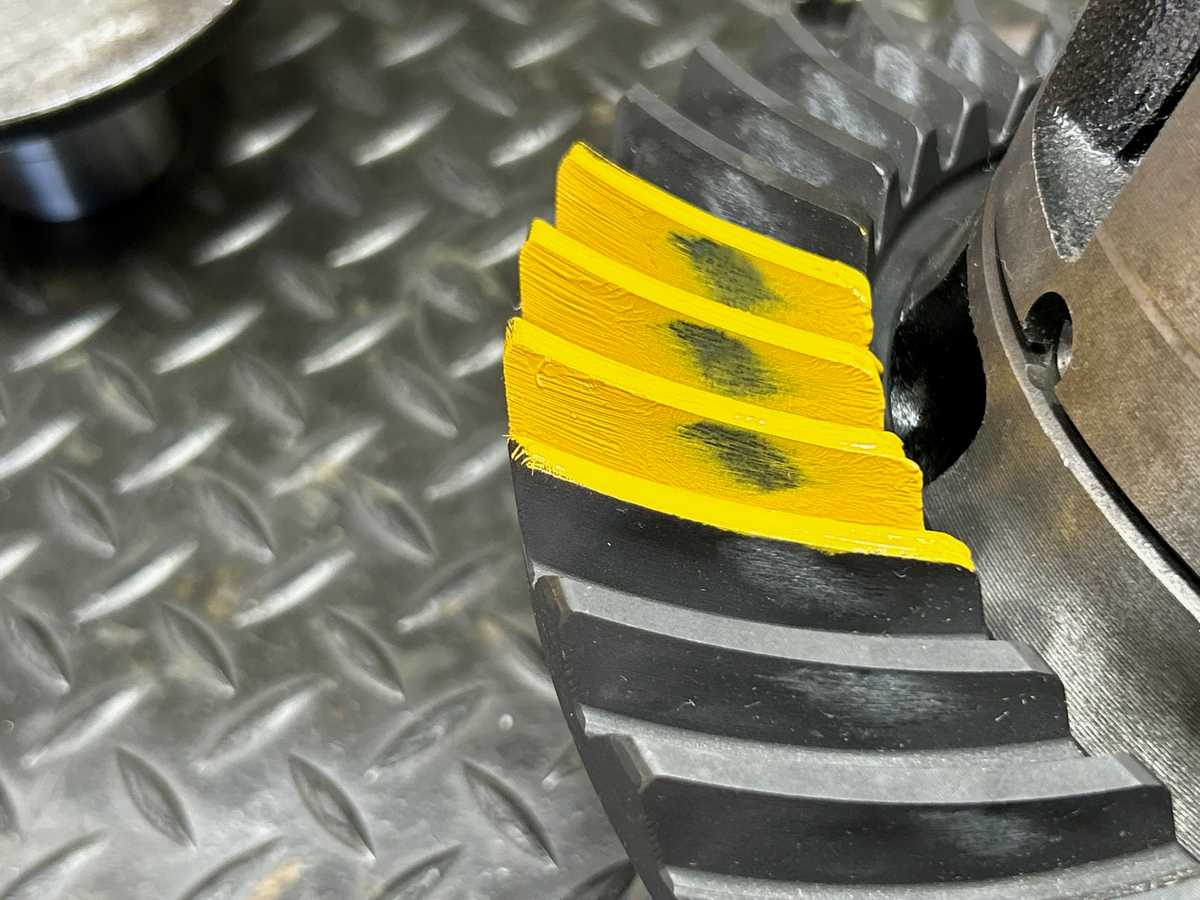 For this install, the backlash was recorded from every tooth...a total of 39 measurements. The residual pattern shown in the above pic is with .049" (too thin). |
