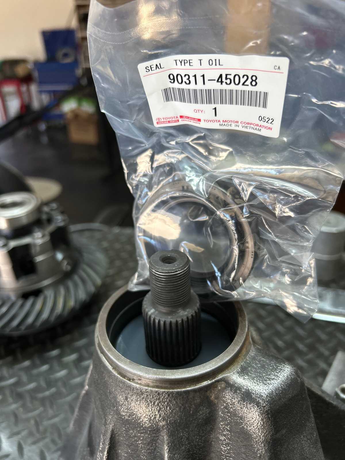 Genuine pinion bearings will go in. A new 32 spline flange was required because the pinion splines were the massive 32 splines. This 32 spline flange can be had at Cruiser Outfitters. |