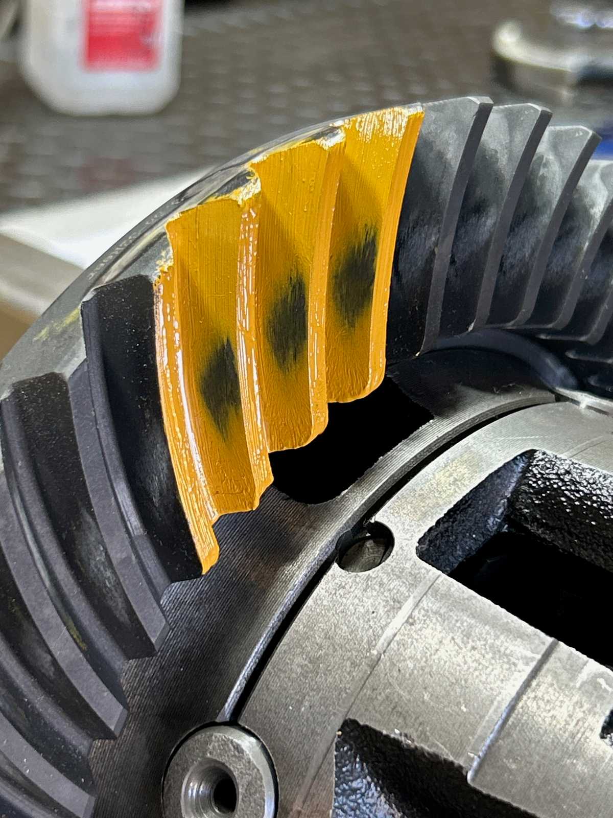 | Drive side....Here's the final patterns with .053" shim and .009" backlash. |