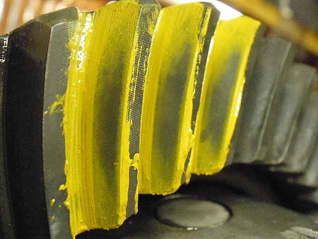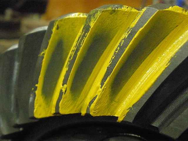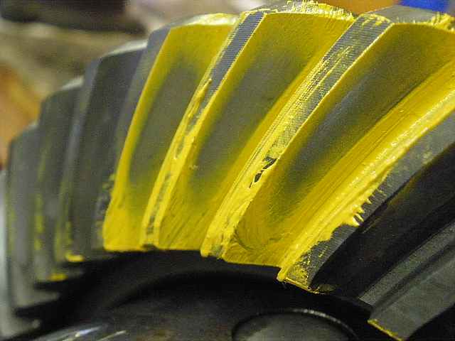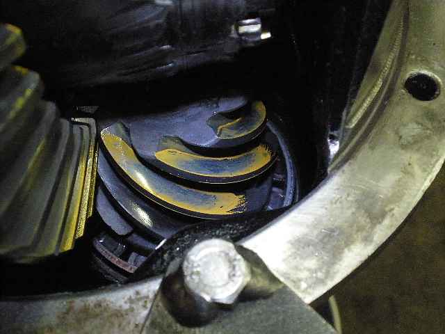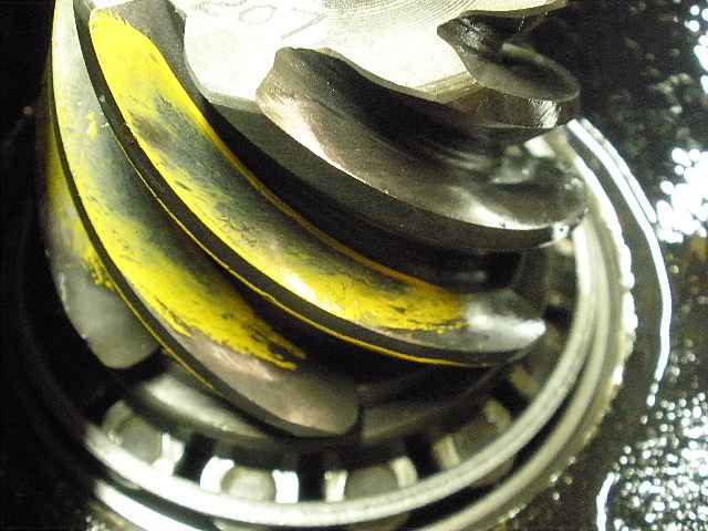 Before dis-assembly, the ring gear is painted. The drive pattern looks fair...possibly a little shallow. |
