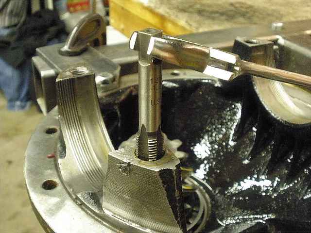 That damaged bolt almost destroyed the threads in this particular hole...using a tap seemed to save it. The entire carrier would have been junk if the internal threads had been destroyed. |