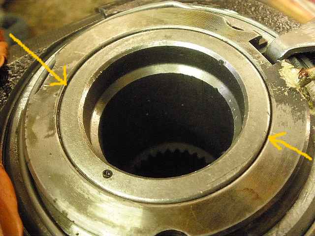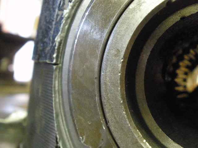 Some dings on the inside of the carrier bore...outer pinion race seems ok. |
