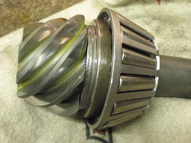It certainly wouldn't hurt to press the bearing off and add just a little more shim to push the pattern closer to the ideal. As the painted pattern showed earlier, it was a little shallow. |