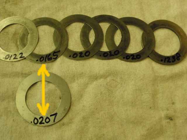 The original shim added up to .2125 and I will substitute in a shim that is .004" thicker. |
