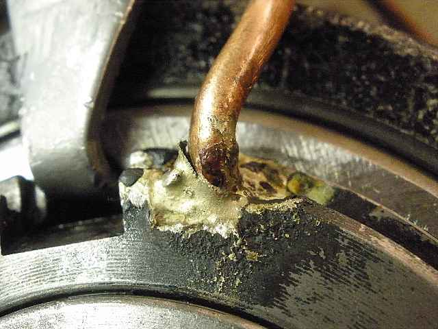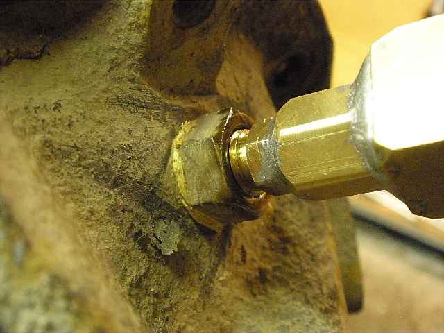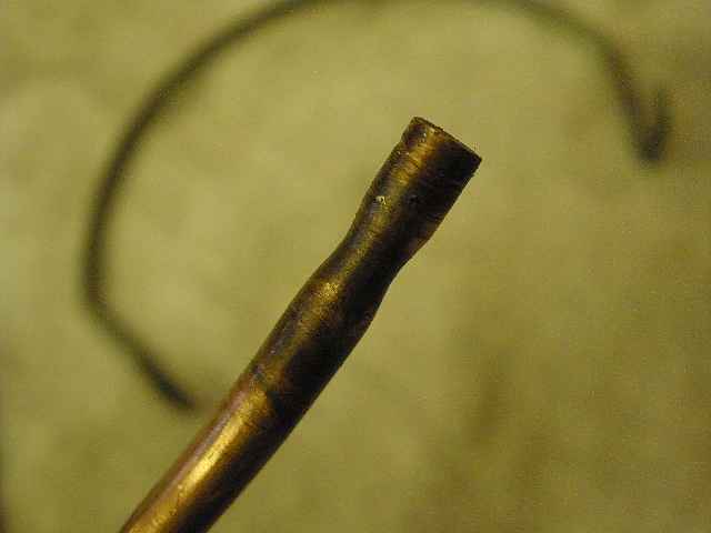 This happens to the end of the soft copper line when the brass bulkhead fitting is over-tightened and the fat o-ring starts to crush the copper. If this continues, it's possible to almost pinch off the line resulting in the air locker responding slower. |