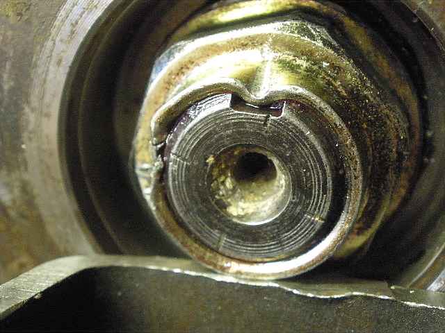 I used red Loctite and cranked the nut extra tight. I measured 7 in/lb which is at the upper limit for used bearings. Ding the nut and this end is done. |